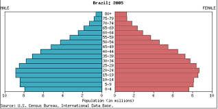 Pirâmide Etária - Para representar essas informações, utiliza-se a pirâmide etária - representação gráfica da composição da população de um lugar em função da idade e do sexo, em um ano determinado. "Esse gráfico é construído marcando-se, na linha da ordenada (vertical), as idades da população de zero até o limite superior (80 anos ou mais); na linha da abscissa, (horizontal) os efetivos da população, ou seja, sua quantidade ou número em cada idade - ou em cada grupo de idades - em valores absolutos ou ainda em percentagem, representando a população do sexo masculino de um lado da pirâmide e a do sexo feminino de outro" (Adas, Melhem. Panorama Geográfico do Brasil: contradições, impasses e desafios socioespaciais. Moderna, p. 488. 2000).